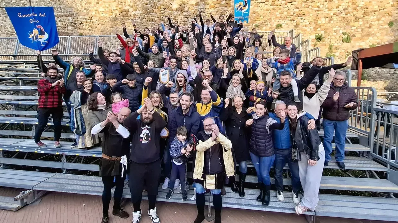 Il Gallo ha cantato vittoria! La contrada giallo-blu si è aggiudicata l’ambita chiave del Castello di San Cassiano, vincendo la quattordicesima edizione del Carnevale Medievale Sancascianese. Sono trascorse ormai alcune ore dalla proclamazione della contrada vincitrice da parte del Sindaco Roberto Ciappi. Dal palco della tribuna, domenica pomeriggio, il primo cittadino ha emesso il responso dei cinque membri della giuria comunicando la classifica delle posizioni raggiunte dalle cinque contrade.