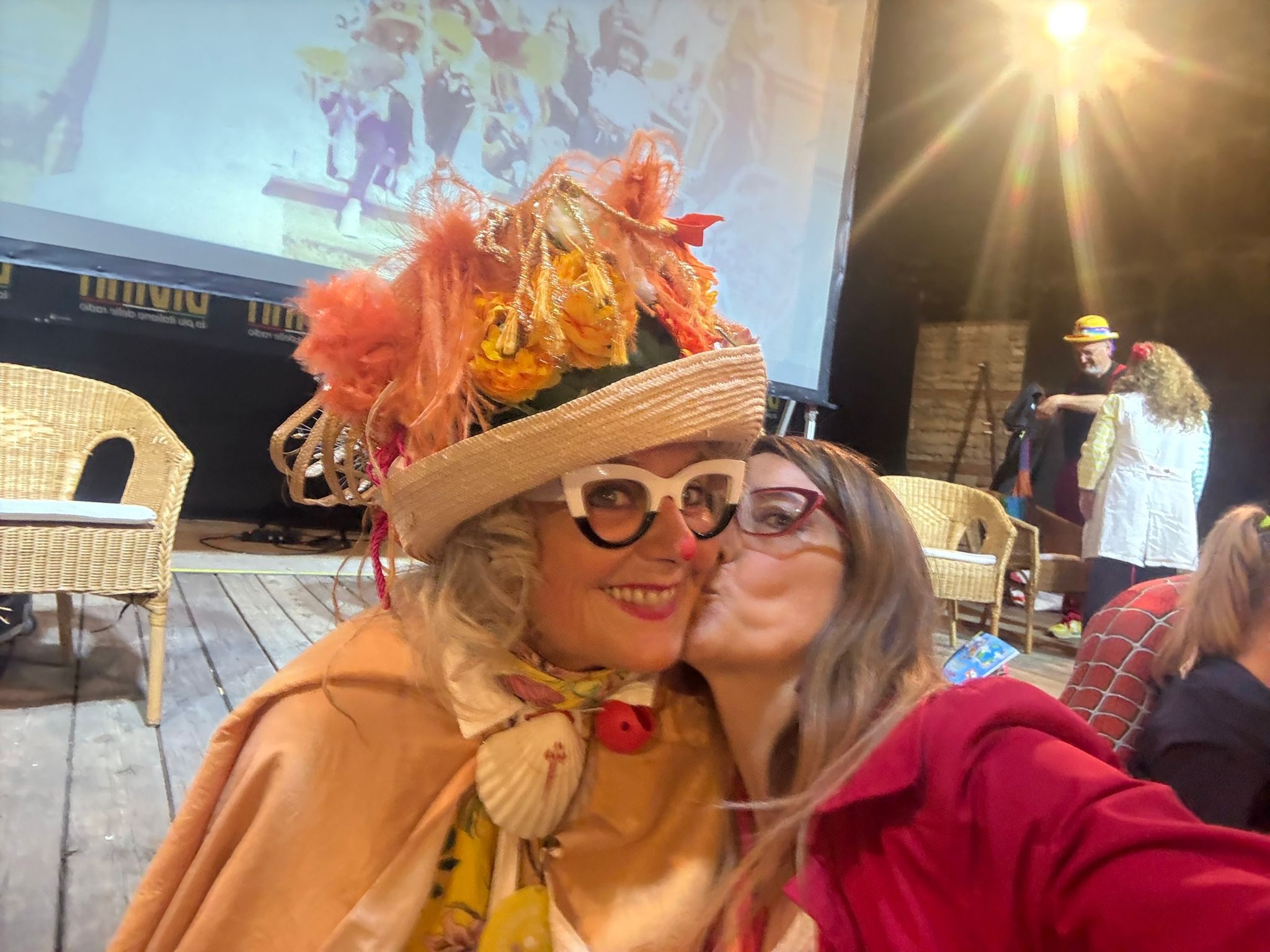 Il dialogo tra Zia Caterina e Mattia Villardita si è intrecciato agli interventi di Paolo Mazzinghi, meglio conosciuto come Clown Pasticca, e ai rappresentanti delle tre associazioni beneficiarie alle quali andrà il ricavato della manifestazione sancascianese. Si tratta di alcune delle più importanti realtà toscane che operano nel settore della clownterapia. Erano presenti Ivana Trombatore dell’associazione VIP Firenze OfV che opera all’Ospedale Torregalli e al Centro di riabilitazione “Don Carlo Gnocchi” di Firenze, Giacomo Gosti, o meglio dottor Fresco, dell’associazione Soccorso Clown, attivo fra gli altri all’Ospedale pediatrico Meyer, al Policlinico Gemelli e all’Ospedale Pediatrico Bambino Gesù di Roma, all’Ospedale Fatebenefratelli di Milano e nella Rsa della Toscana, e Rachele Ignesti, alias dottoressa Gomitolo, della Onlus Clowncare m’illumino d’immenso, impegnata a regalare sorrisi all’Ospedale di Ponte a Niccheri e nella realizzazione di varie missioni umanitarie all’estero.