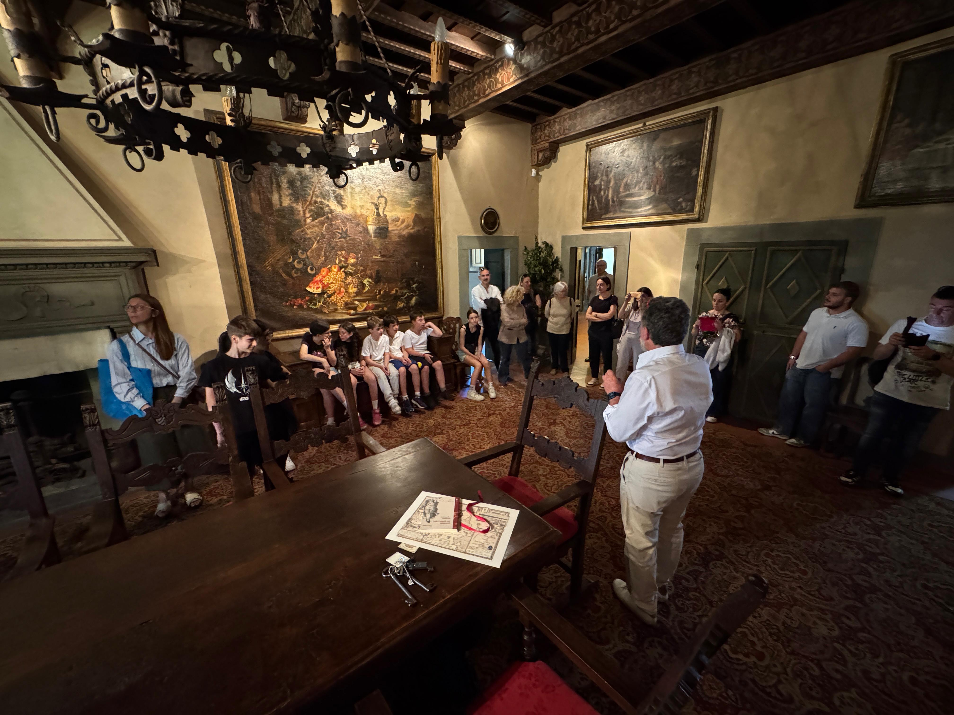 Non poteva chiudersi con un epilogo migliore l’avventura didattica degli studenti e delle studentesse della ex classe 5A della scuola primaria “Bucciolini” di Strada in Chianti. Accompagnati dalle loro insegnanti, i ragazzi e le ragazze hanno potuto conoscere da vicino il mondo di Giovanni da Verrazzano, a partire dal Castello che porta il suo nome. E’ stato il proprietario, nonché presidente della Fondazione Giovanni da Verrazzano, Luigi Cappellini a guidare la delegazione di studenti, insegnanti e genitori, insieme alla Vicesindaca Monica Toniazzi, l’Assessore alle Politiche educative Giacomo Amalfitano e alla Vicepreside Assunta Licheri, alla scoperta delle vicende che legano il territorio e il navigatore all’antica fortificazione, immersa tra le colline del Chianti Classico, nella campagna di Greve. Tra le sale del castello i giovani hanno potuto osservare mappe, documenti, dettagli, tracce, testimonianze relative alla famiglia dell’intraprendente esploratore grevigiano che ha ispirato il lavoro di classe. Il fumetto è stato elaborato dai ragazzi e dalle ragazze sotto la guida dei maestri Katya Bettini e Elia Franchini dell’Istituto comprensivo di Greve in Chianti, diretto da Rossella Aiello.
