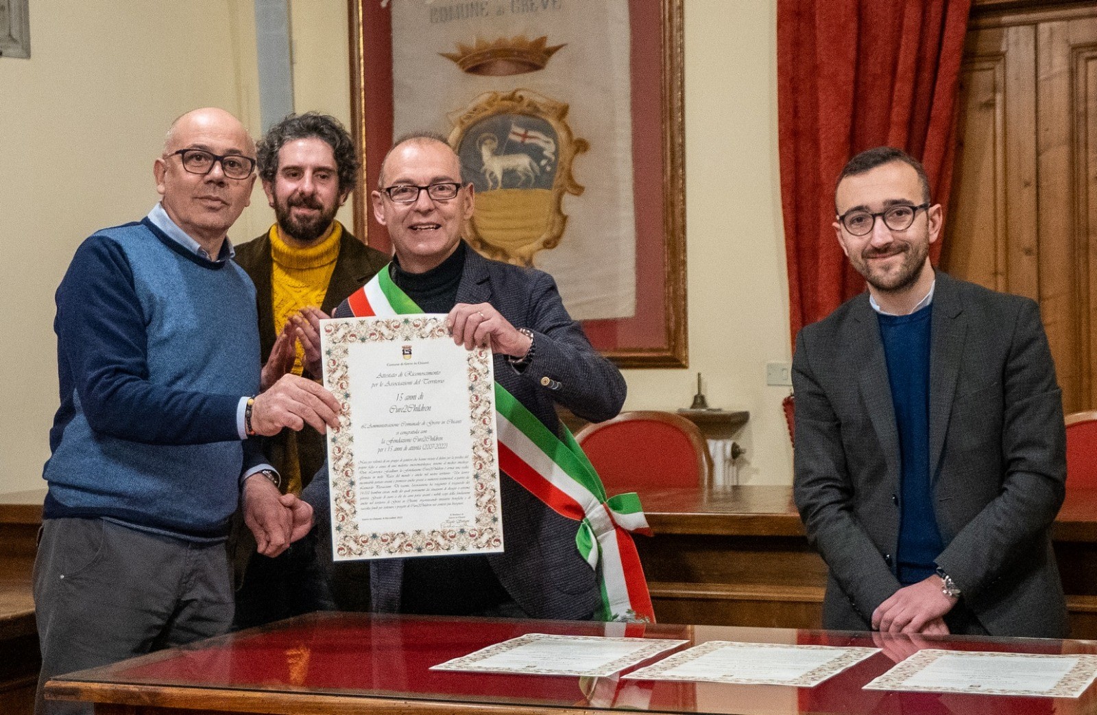 La vita associativa di Greve in Chianti racconta la lunga storia di un territorio animato dalla passione autentica di chi investe il proprio tempo libero nella crescita sostenibile della comunità, a favore dei bisogni dell’altro, della diffusione della conoscenza e della promozione delle risorse culturali, della cura e del rispetto del patrimonio ambientale, della protezione civile. Un percorso individuale e collettivo, quello del volontariato grevigiano, che nel tempo ha affondato lunghe radici nei settori più diversi tanto da raggiungere traguardi significativi e celebrare anniversari speciali. E’ ciò che ha voluto sottolineare l’amministrazione comunale di Greve in Chianti organizzando, nei giorni scorsi, una cerimonia di premiazione dedicata ad alcune delle associazioni chiantigiane più longeve. Compleanni d’oro, d’argento e ultradecennali sono stati festeggiati insieme ai protagonisti: l’associazione La Racchetta, giunta alla soglia del mezzo secolo di vita, spesa nell’attività antincendio boschivo e nelle emergenze di protezione civile, il Gruppo Insieme, a sostegno della disabilità e del disagio di ogni fascia di età, il Gruppo San Michele GEV del Chianti, operativo nell’escursionismo e nel settore storico-culturale e ambientale, entrambi al traguardo dei 30 anni, e la Fondazione Cure2Children onlus che ha spento 15 candeline, tanti quanti gli anni di attività volontaria finalizzata a supportare i bambini con tumori e gravi malattie del sangue.